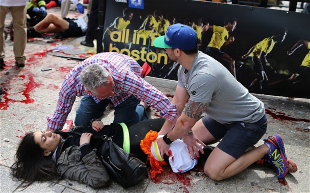 La sueur a laissé place au sang. La zone d’arrivée, théâtre de toutes les joies, est devenu la porte des enfers. En quelques minutes les cris ont changé de tonalité. Les rythmes cardiaques accélèrent anormalement. Mais cela n’a plus rien à voir avec l’effort. Les coureurs sont à terre, les spectateurs courent. L’ordre des choses s’est inversé. Personne ne comprend. Un homme s’anime, une femme crie, l’autre ne sait pas pourquoi il ne fonce plus vers cette ligne. Habituellement, les coups de canon ou de pistolets sont tirés au départ des courses. Le 117ème Marathon de Boston, le plus vieux au monde, vient de s’achever sur deux terribles explosions. La terreur aveugle et complexe vient de balayer le bonheur simple d’un jour off, le Patriot’s Day.