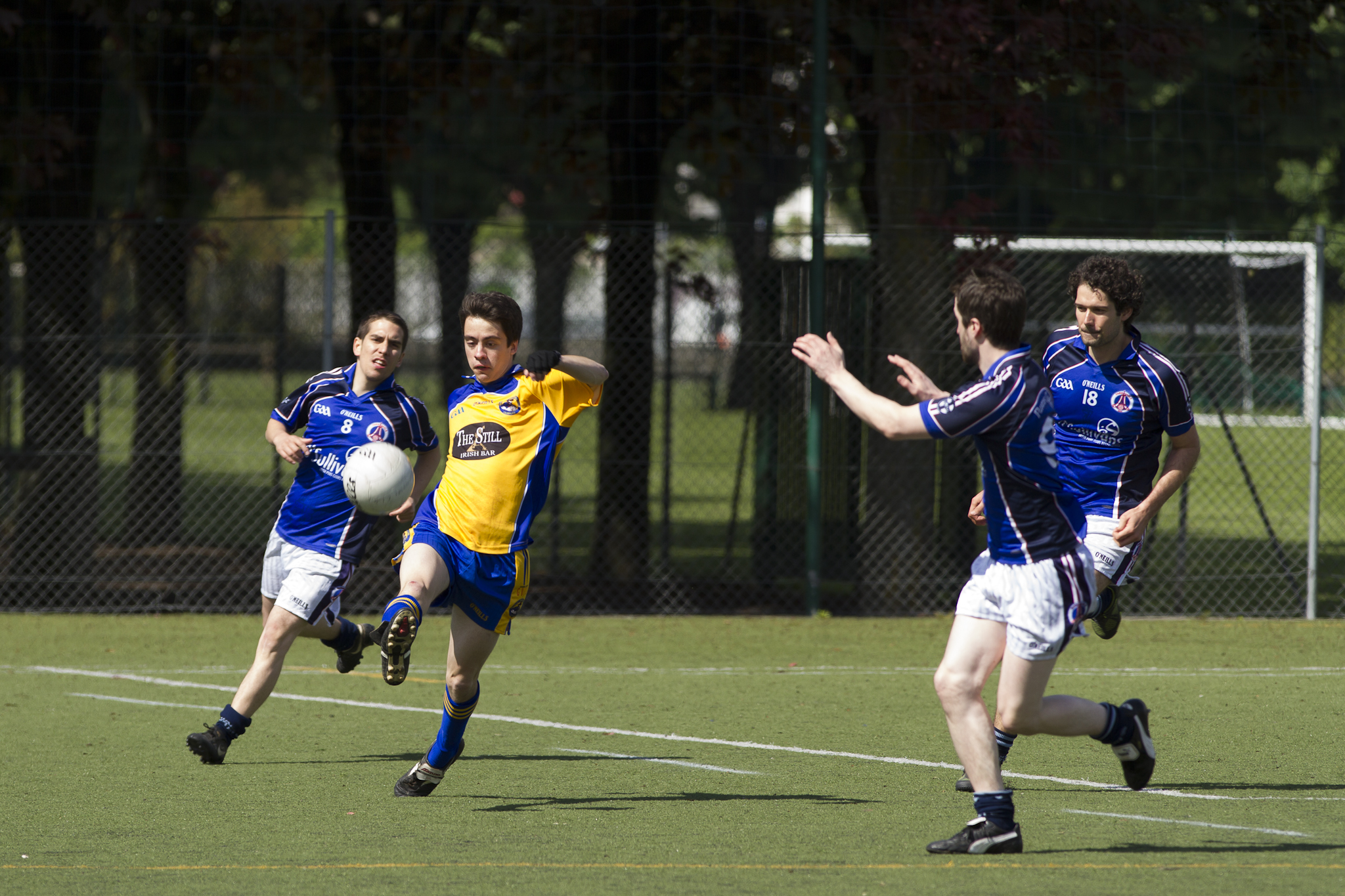 Si vous rentrez sur un terrain de football, que vous regardez vers les buts et que vous apercevez les poteaux latéraux se prolonger, au-delà des filets et de la barre transversale, vers le ciel, comme des poteaux de rugby, pas de doute, ne criez pas au fou, vous êtes bien sur un terrain de football gaélique. Certes, il y a bien 15 joueurs de champs comme au rugby et un gardien de but comme au foot. Certes, le ballon ressemble à un ballon de volley mais ne paniquez pas : tout est normal ! Débarrassez-vous des codes habituels, ce jeu n’est ni excentrique ni une création récente. Bien au contraire, ce jeu est l’un des plus anciens et des plus authentiques : les premières traces de cette ancienne forme de football remontent à 1537, même si la codification des règles n’est intervenue que bien plus tard, à partir de 1887. Et ce jeu fait même partie de l’Histoire.