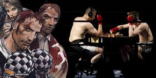 Autre sport mêlant esprit & physique : le Chess-Boxing. Attention, c’est un peu plus sérieux. Vous l’aurez compris, on alterne 6 rounds d’échecs et 5 de boxe. C’est-à-dire qu’à un moment donné du match, si en regardant les cases noires et blanches, vous ne les distinguez plus, c’est assez normal. Vous avez peut-être pris un crochet dans l’œil droit juste avant mais vous ne vous en souvenez plus parce que, tout de même, le Chess-Boxing, ça cogne ! Alors si vous voulez voir le Fou qui va prendre votre Reine, il vaut mieux s’entraîner à parer les coups. Les vrais. Pour la précision, les rencontres comptent 11 rounds et la victoire suit logiquement un échec et mat, un abandon ou un KO. Ce qui revient à peu près au même.